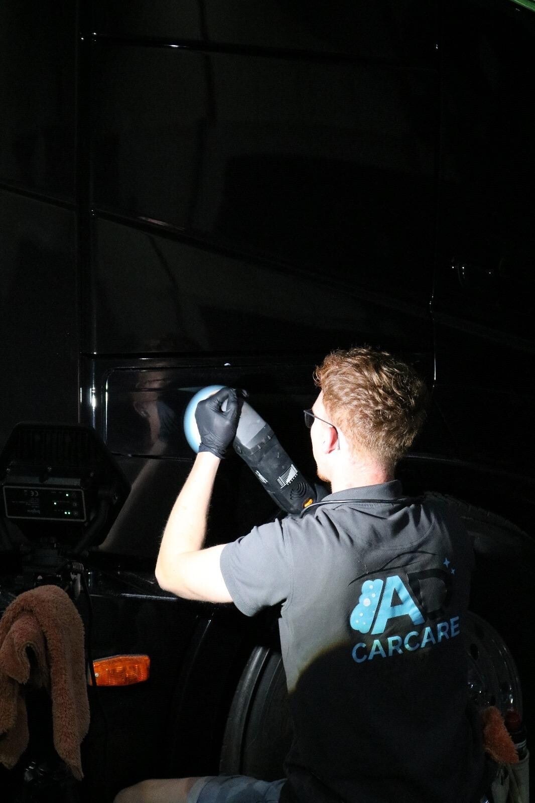 Polijsten van een auto of vrachtwagen gebeurt in meerdere stappen, afhankelijk van de staat van de lak. Eerst bekijken we hoe diep de krassen zijn en hoe dof de lak is. Op basis daarvan bepalen we of één, twee of drie polijststappen nodig zijn om de lak weer glad, glanzend en egaal te maken. Daarna wordt de lak beschermd met wax, sealant of coating, zodat de glans langer blijft en de auto of vrachtwagen goed beschermd is.